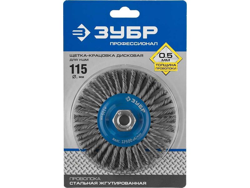 ЗУБР "ПРОФЕССИОНАЛ". Щетка дисковая для УШМ, плетеные пучки стальной проволоки 0,5мм, 115ммхМ14-298