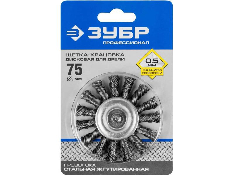 Щетка дисковая для дрели, жгутированная стальная проволока 0,5мм, 75мм