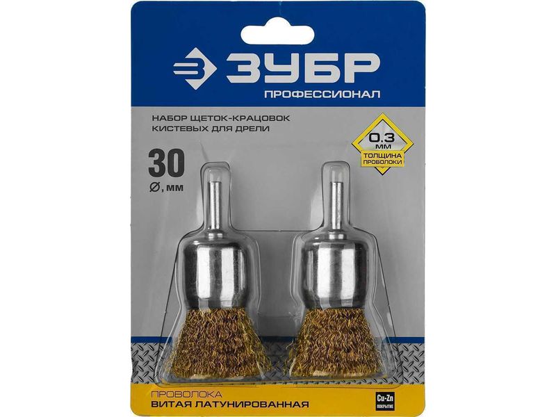 Набор щеток кистевых для дрели, витая стальная латунированная проволока 0,3мм, 30мм, 2шт