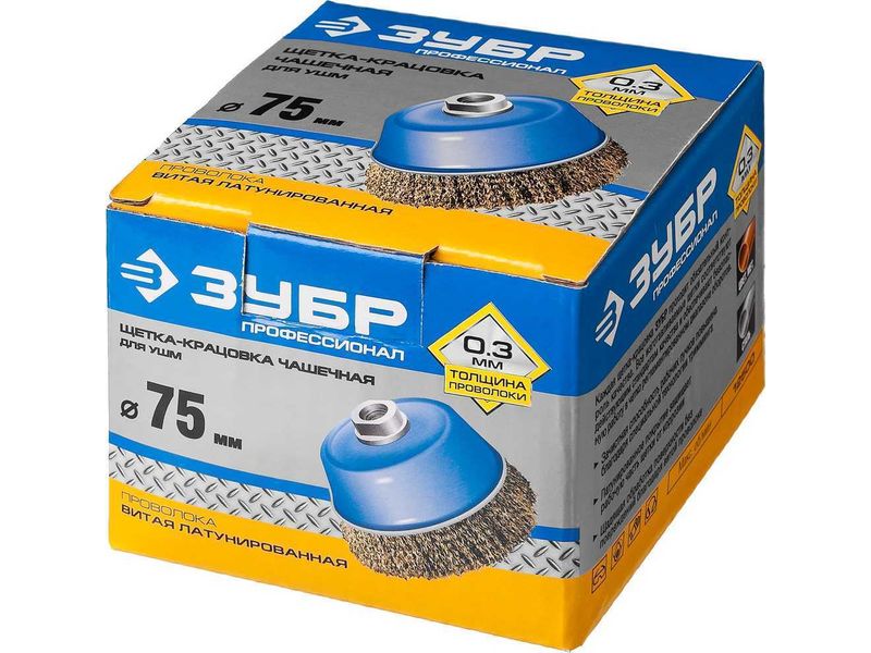 Щетка чашечная для УШМ, витая латунированная стальная проволока 0,3мм, 75ммхМ14-298