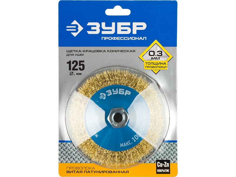 Щетка коническая для УШМ, витая латунированная стальная проволока 0,3мм, 125ммхМ14-298
