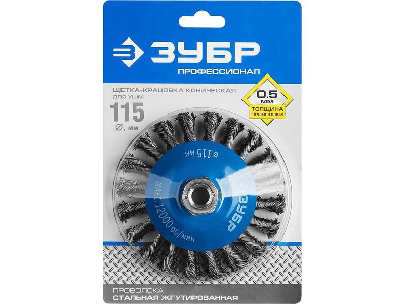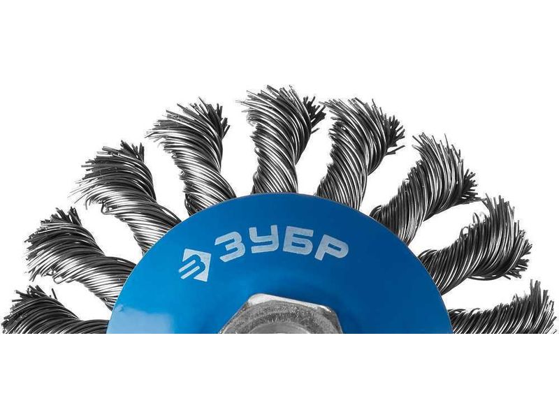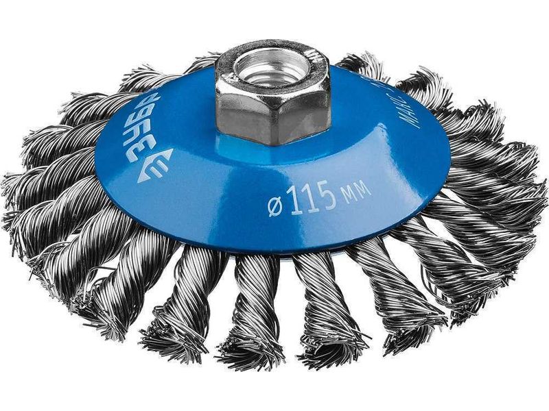 Щетка коническая для УШМ, плетеные пучки стальной проволоки 0,5мм, 115ммхМ14-298