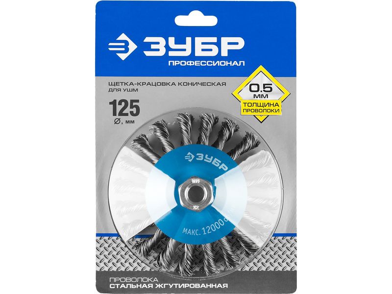 Щетка коническая для УШМ, плетеные пучки стальной проволоки 0,5мм, 125ммхМ14-298