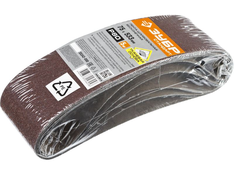 Лента шлифовальная бесконечная ЗУБР "СТАНДАРТ" на тканевой основе, для ЛШМ, P80, 75х533мм, 5 шт