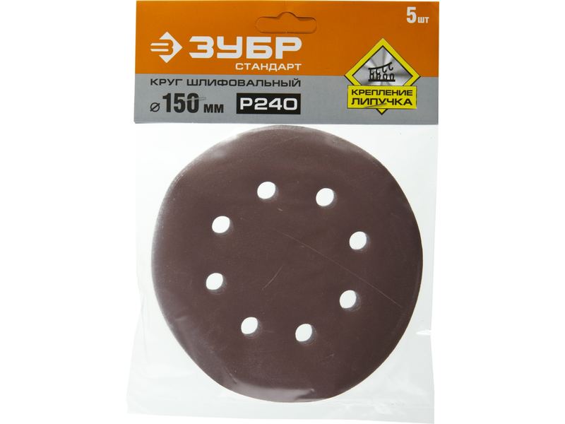 Купить Круг шлифовальный ЗУБР "СТАНДАРТ" из абразивной бумаги на велкро основе, 6 отв., Р240, 150мм, 5шт