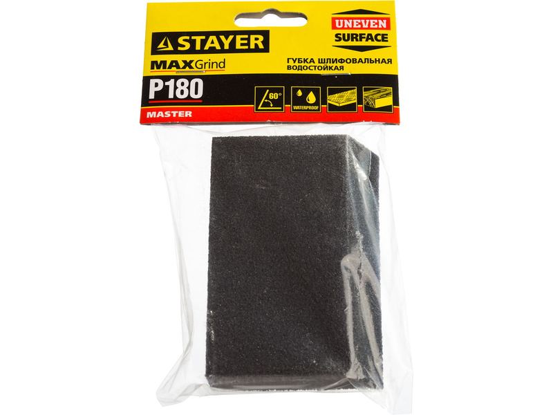 Губка шлифовальная STAYER "MASTER" угловая, зерно - оксид алюминия, Р180, 100 x 68 x 42 x 26 мм, средняя жесткость.