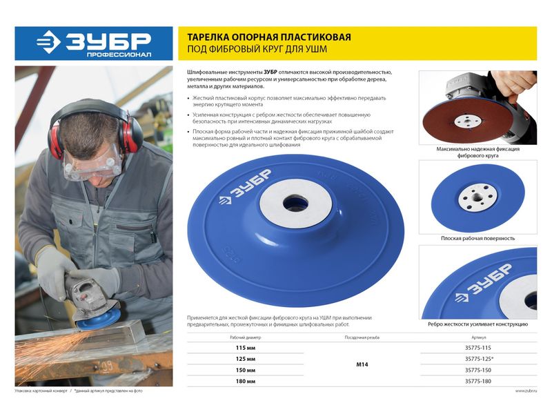 Купить Тарелка опорная ЗУБР "ПРОФЕССИОНАЛ" пластиковая для УШМ под круг фибровый, М14, d 150мм