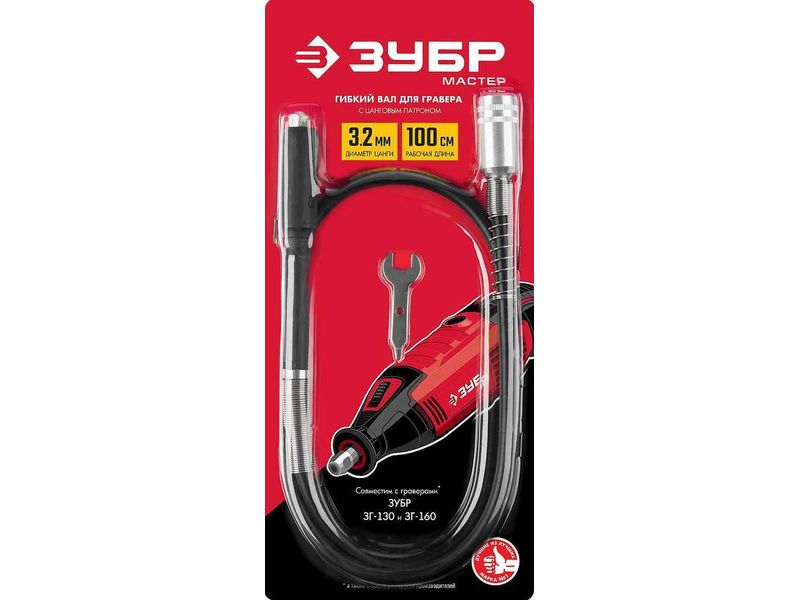 ЗУБР Гибкий вал с цанговым патроном, Д 1,6 - 3,2 мм, L - 1метр