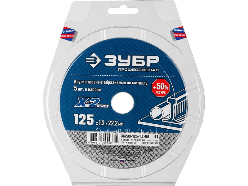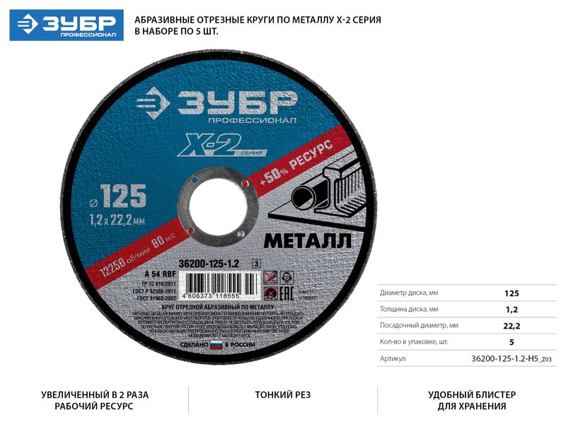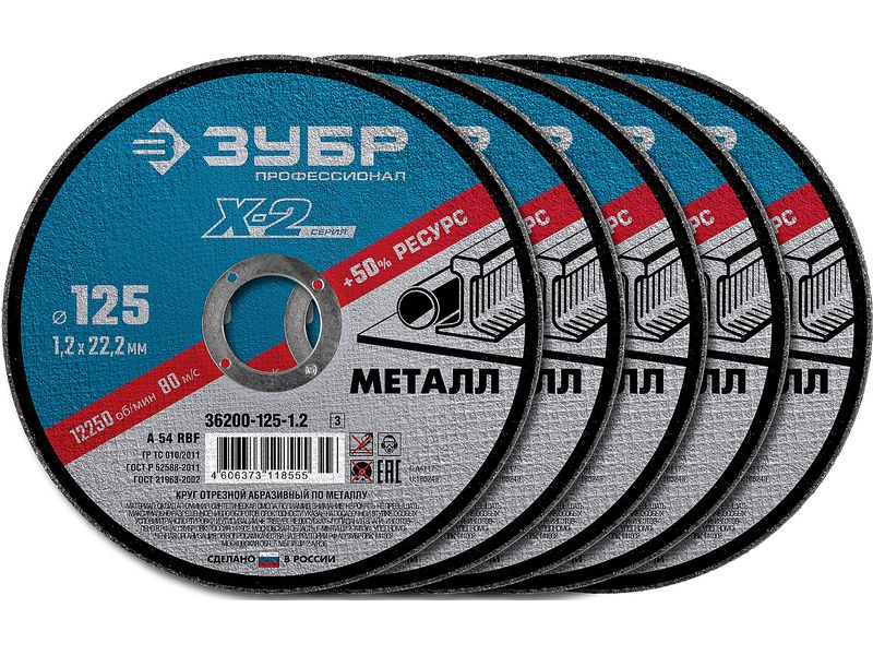 Купить Набор 5 шт: Круги отрезные X-2 по металлу 125х1,2х22мм, ЗУБР
