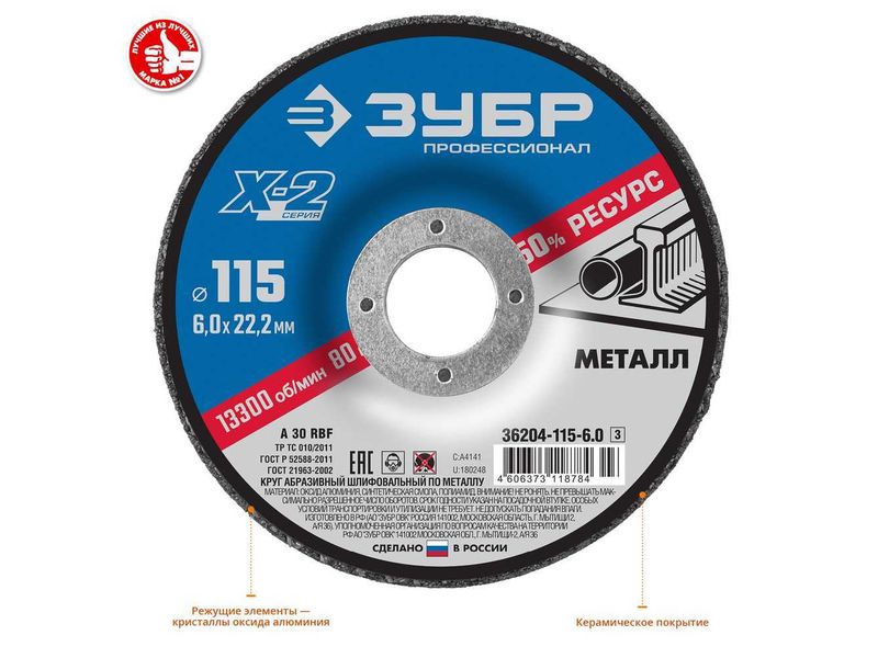 Круг шлифовальный X-2 по металлу, 115х6х22,23мм, ЗУБР