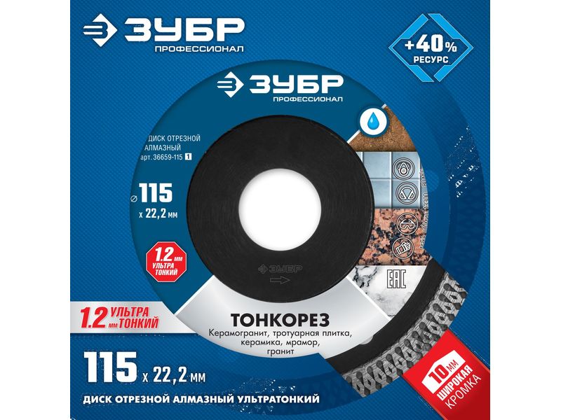 Диск отрезной алмазный ТОНКОРЕЗ, d-115 мм, ЗУБР Профессионал 36659-115