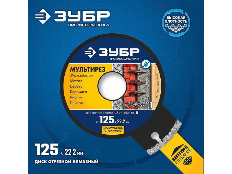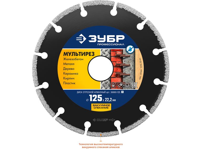 МУЛЬТИРЕЗ 125 мм, диск алмазный отрезной универсальный, ЗУБР Профессионал