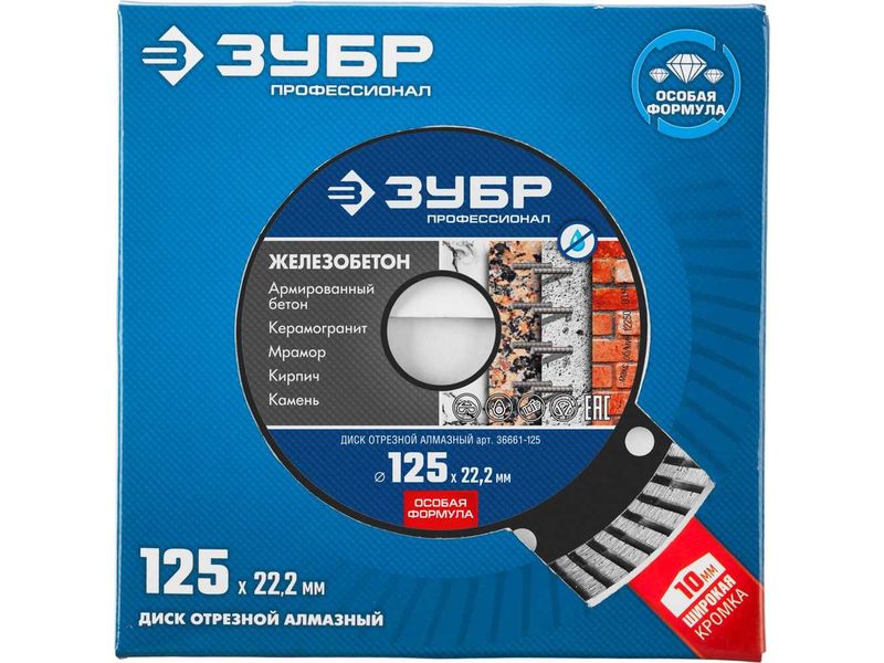 Диск отрезной алмазный: ЖЕЛЕЗОБЕТОН, d-125 мм, ЗУБР Профессионал 36661-125