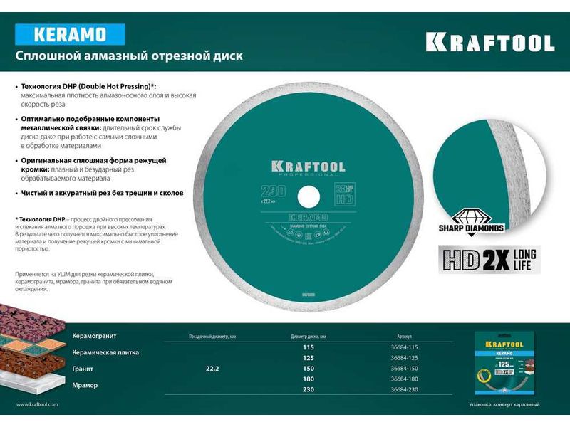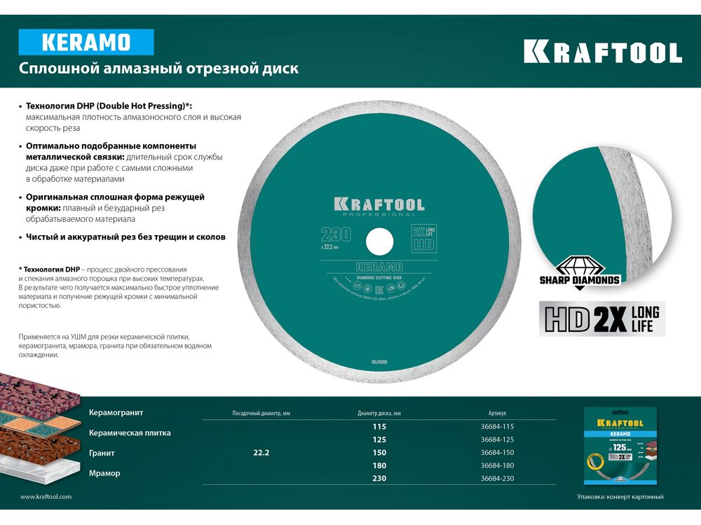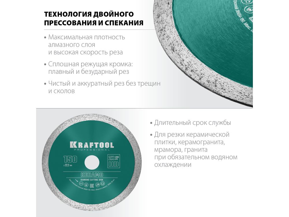 KERAMO 150 мм, диск алмазный отрезной сплошной по керамограниту, керамической плитке, KRAFTOOL-80