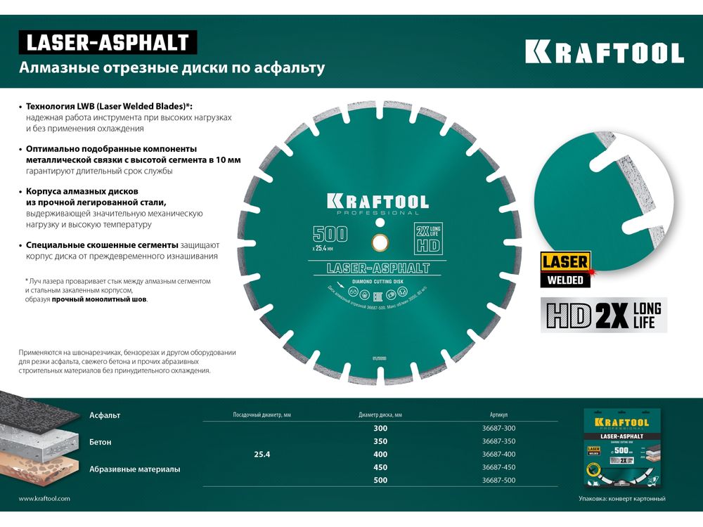 LASER-ASPHALT 450 мм, диск алмазный отрезной по асфальту, KRAFTOOL