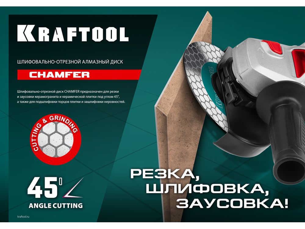 Шлифовально-отрезной алмазный диск Kraftool CHAMFER имеет современные характеристики и обладает большим запасом надежности для длительной и эффективной работы