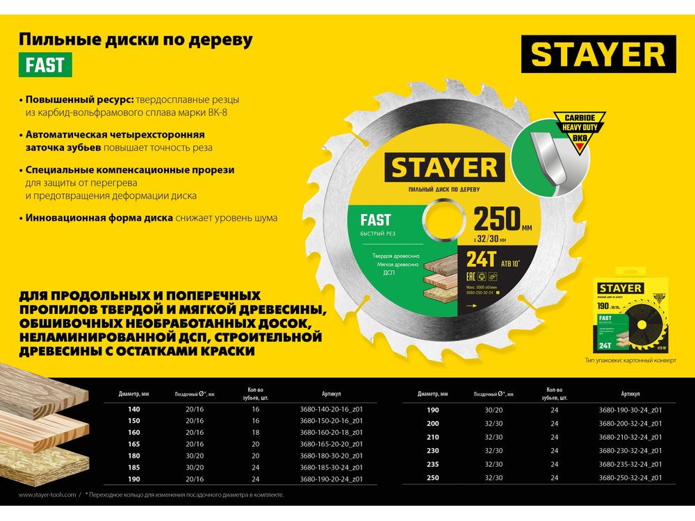 Серия FAST рекомендована для бысрых и грубых пропилов твердой и мягкой древесины, обшивочных необработанных досок, неламинированной ДСП, строительной древесины с остатками краски.