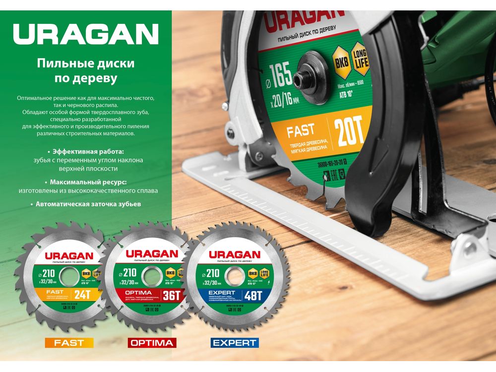 URAGAN Fast 165х20/16мм 20Т, диск пильный по дереву