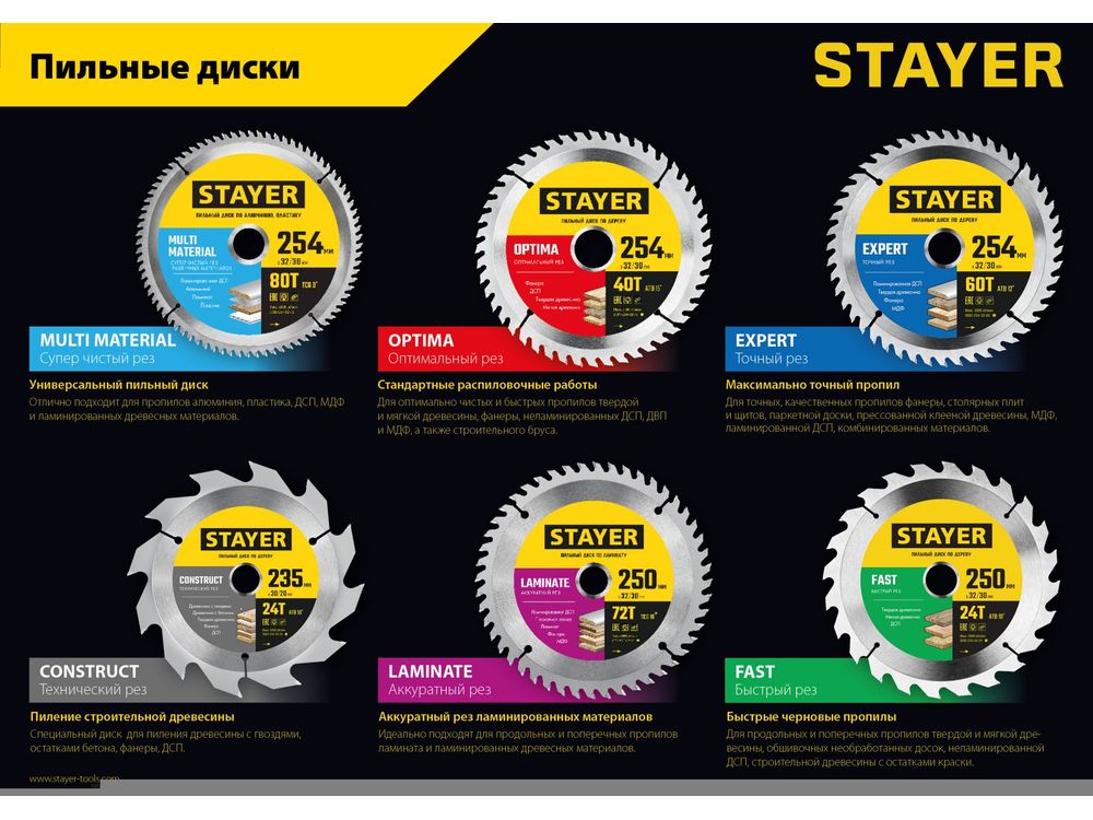 Серия EXPERT рекомендована для для точных, качественных пропилов фанеры, столярных плит и щитов, паркетной доски, прессованной клееной древесины, МДФ, ламинированной ДСП, комбинированных материалов.