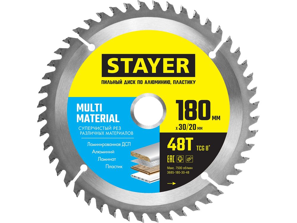 STAYER MULTI MATERIAL 180 x 30/20мм 48T, диск пильный по алюминию, супер чистый рез