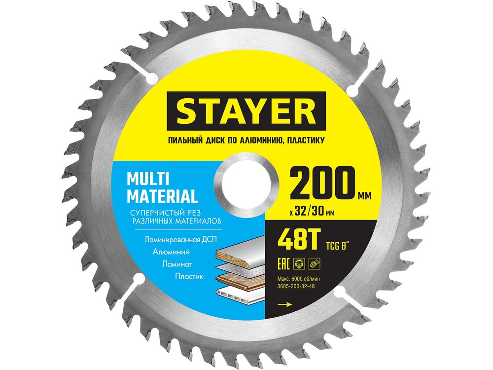 Купить STAYER MULTI MATERIAL 200х32/30мм 48Т, диск пильный по алюминию, супер чистый рез