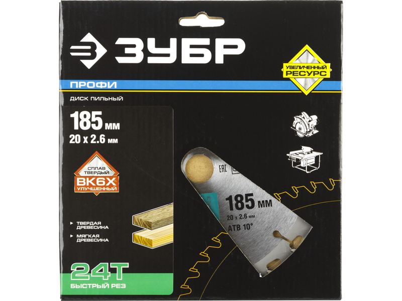 Диск пильный ЗУБР ПРОФИ Быстрый рез по дереву, 24Т, 185х20мм