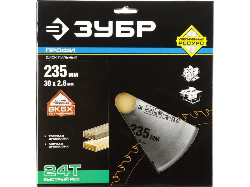 Диск пильный ЗУБР ПРОФИ Быстрый рез по дереву, 24Т, 235х30мм