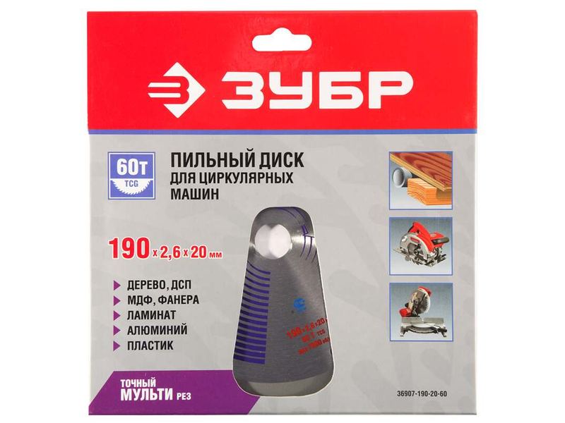 Диск пильный ЗУБР "Точный-МУЛЬТИ рез" по алюминию, ламинату, пластику, ДСП, 190х20мм, 60 Зубьев