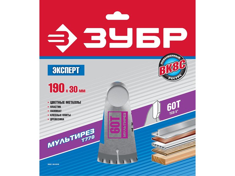 Диск пильный ЗУБР ЭКСПЕРТ Точный-МУЛЬТИ рез по алюминию, ламинату, пластику, ДСП, 190х30мм, 60Т