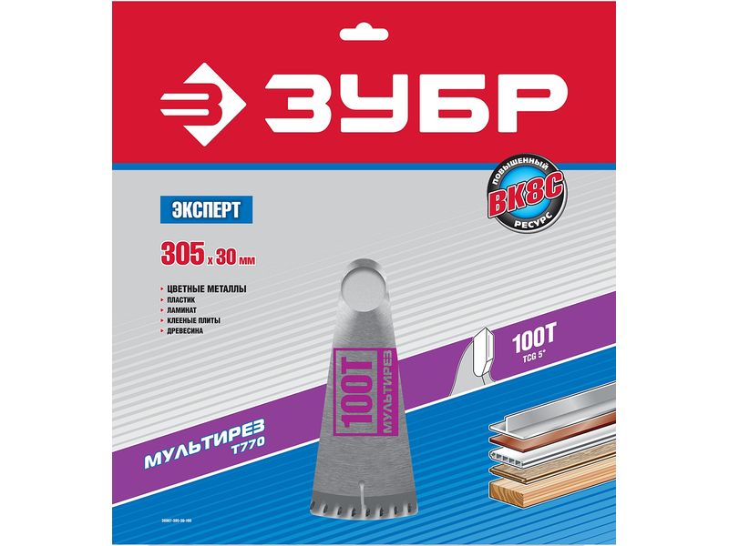 Диск пильный ЗУБР ЭКСПЕРТ Точный-МУЛЬТИ рез по алюминию, ламинату, пластику, ДСП, 305х30мм, 100Т