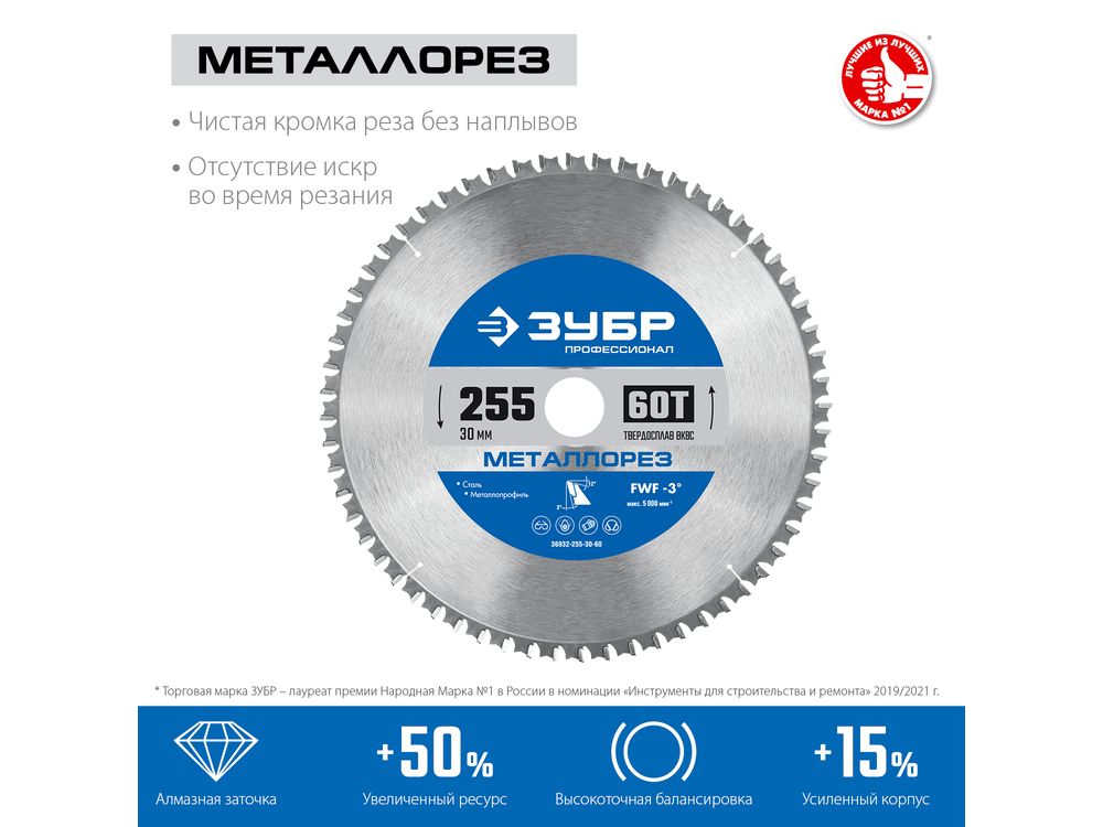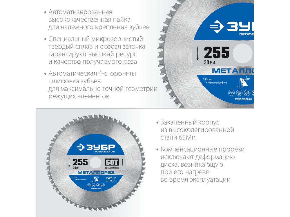 ЗУБР Металлорез 255х30мм 60Т, диск пильный по металлу и металлопрофилю