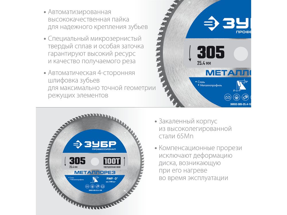 ЗУБР Металлорез 305х25.4мм 100Т, диск пильный по металлу и металлопрофилю