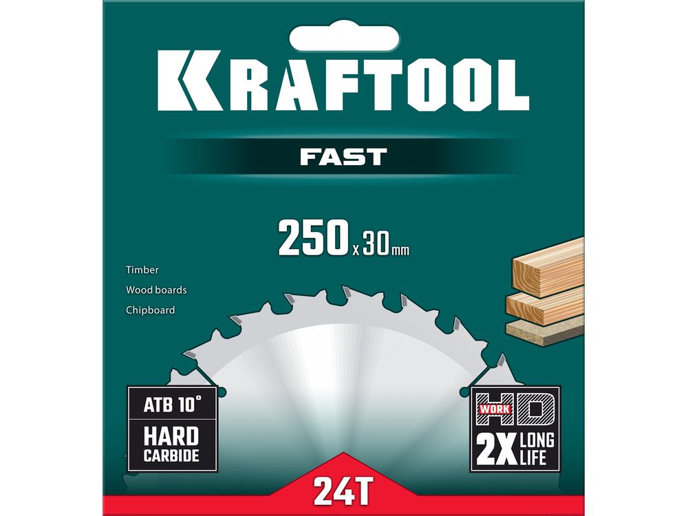 KRAFTOOL Fast, 250 х 30 мм, 24Т, пильный диск по дереву (36950-250-30)