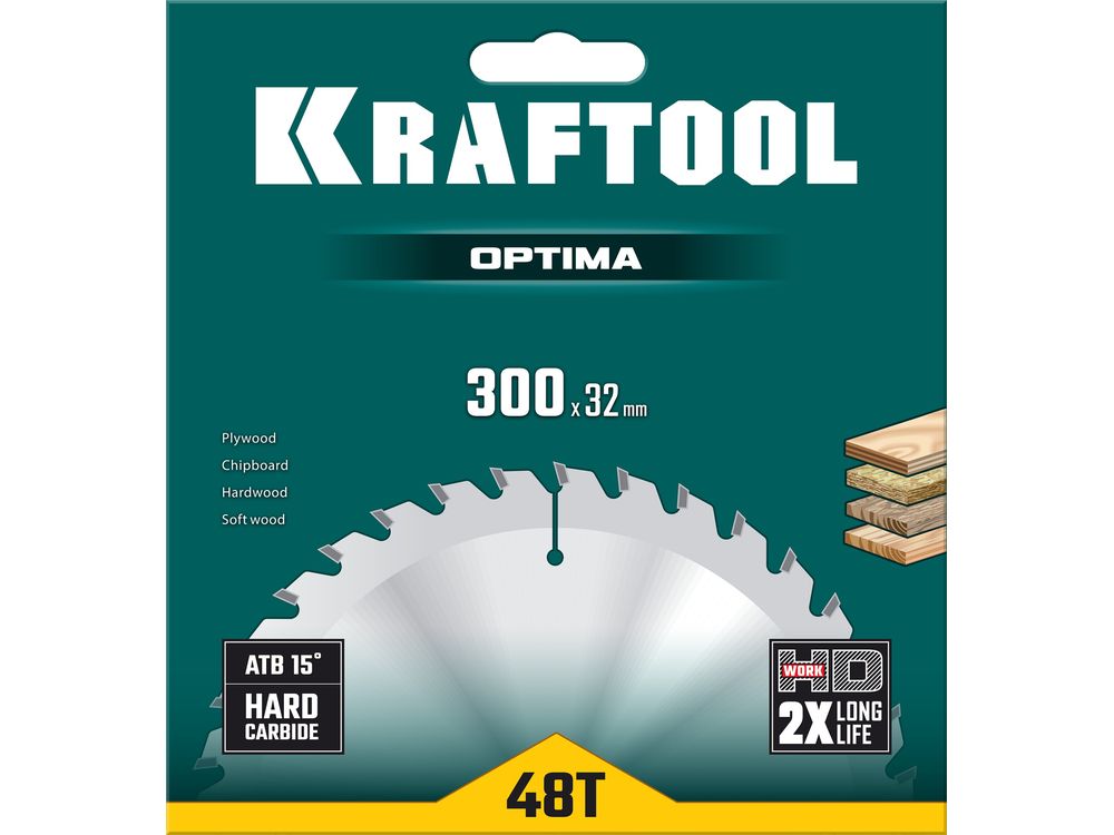 KRAFTOOL Optima 300х32мм 48Т, диск пильный по дереву