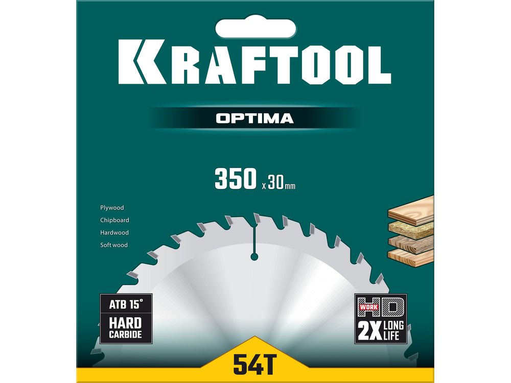 KRAFTOOL Optima 350х30мм 54Т, диск пильный по дереву