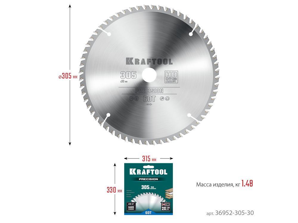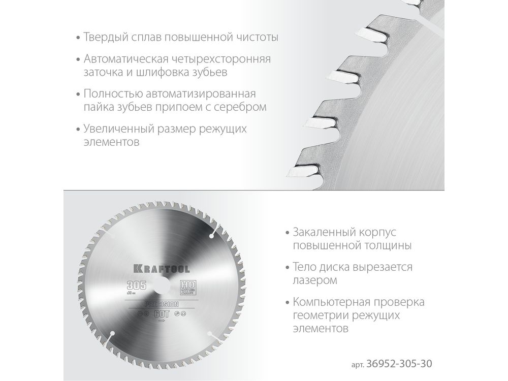 KRAFTOOL PRECISION 305х30мм 60Т, диск пильный по дереву