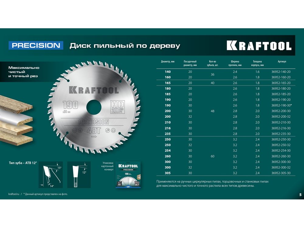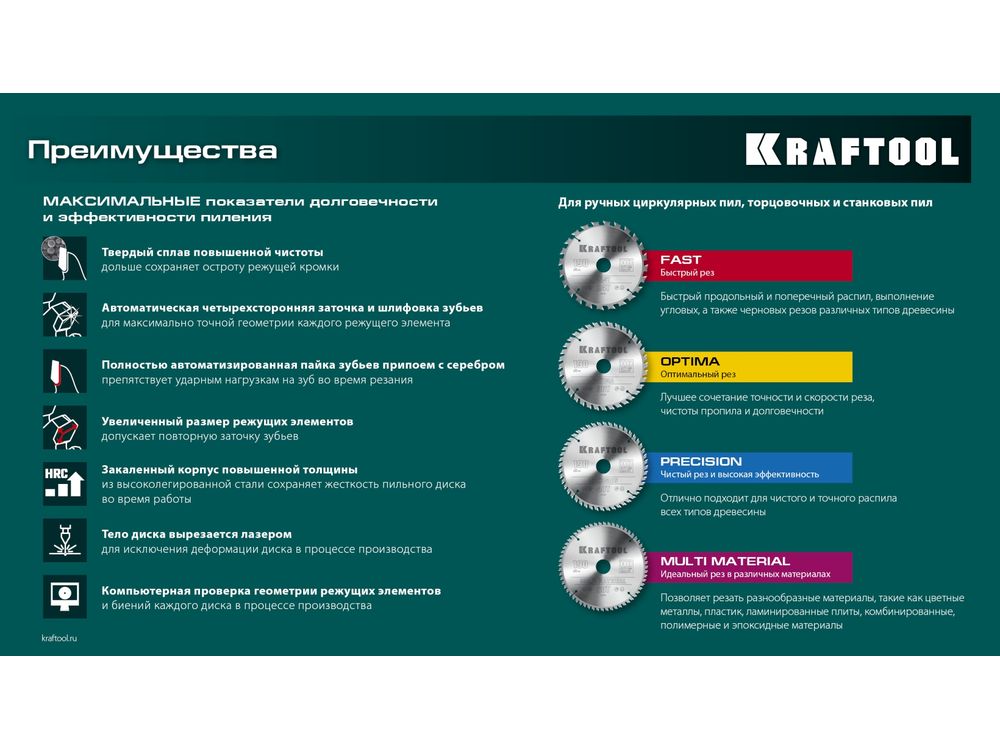 Пильные диски KRAFTOOL характеризуются максимальными показателями долговечности и эффективности пиления