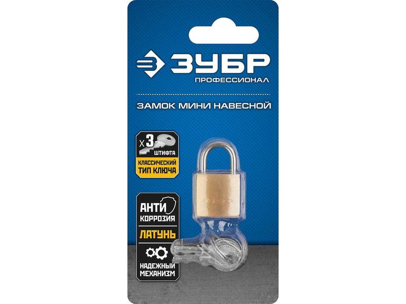 Замок навесной мини, латунный корпус, 20мм, ЗУБР Профессионал