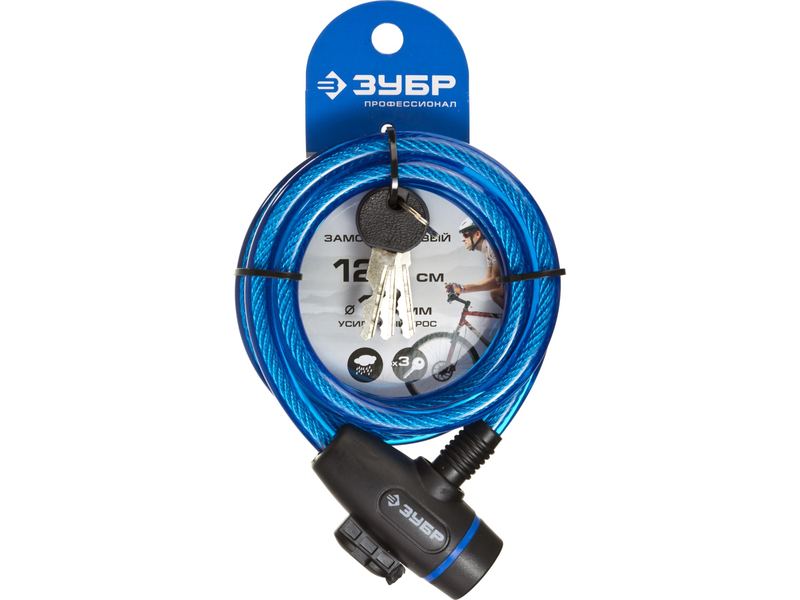 Замок ЗУБР "ПРОФЕССИОНАЛ", тросовый, 3 ключа в комплекте, длина троса 1200мм, d 10мм