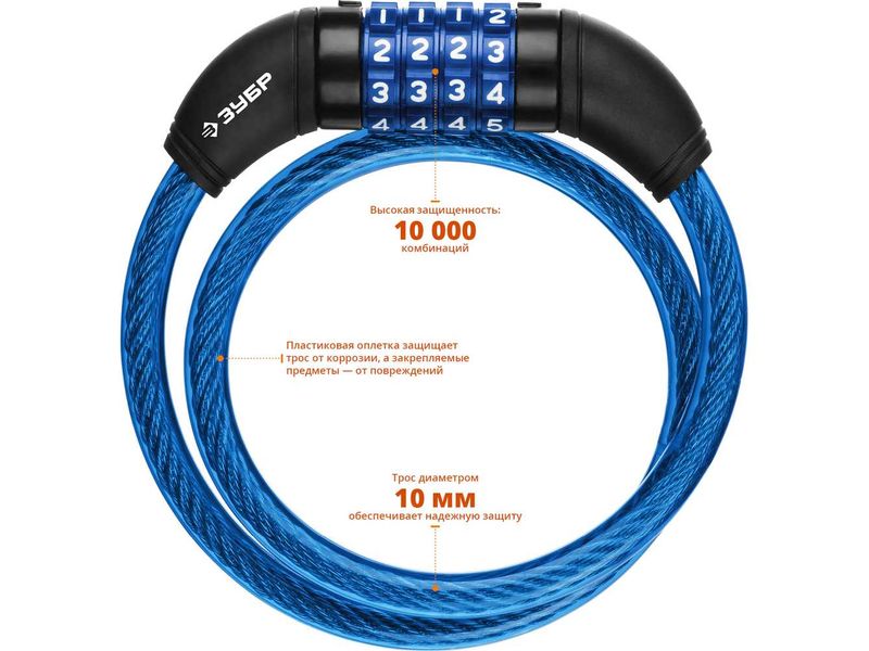 Купить Замок ЗУБР "ПРОФЕССИОНАЛ", тросовый, кодовый, с изменяемым кодом, длина троса - 650мм, d 10мм
