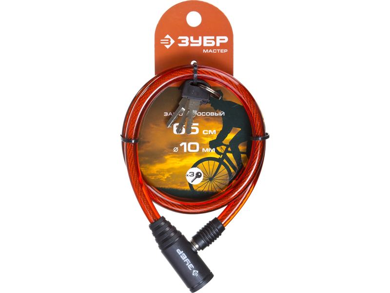 Замок ЗУБР "МАСТЕР", тросовый, 3 ключа в комплекте, длина троса 650мм, d 10мм
