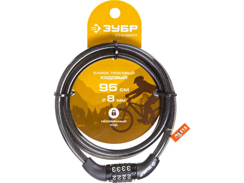 Замок ЗУБР "СТАНДАРТ", тросовый, кодовый, с неизменяемым кодом, длина троса - 950мм, d 8мм.