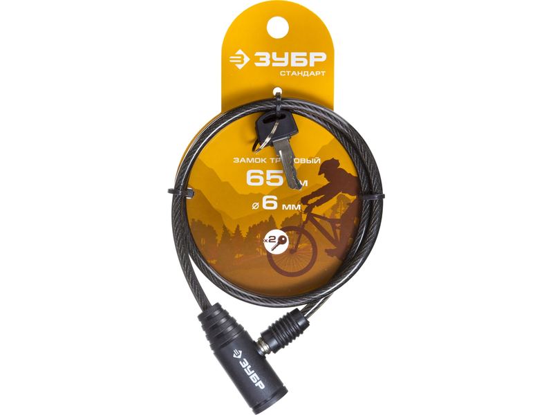 Замок ЗУБР "СТАНДАРТ", тросовый, 2 ключа в комплекте, длина троса 650мм, d 6мм