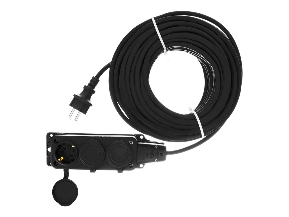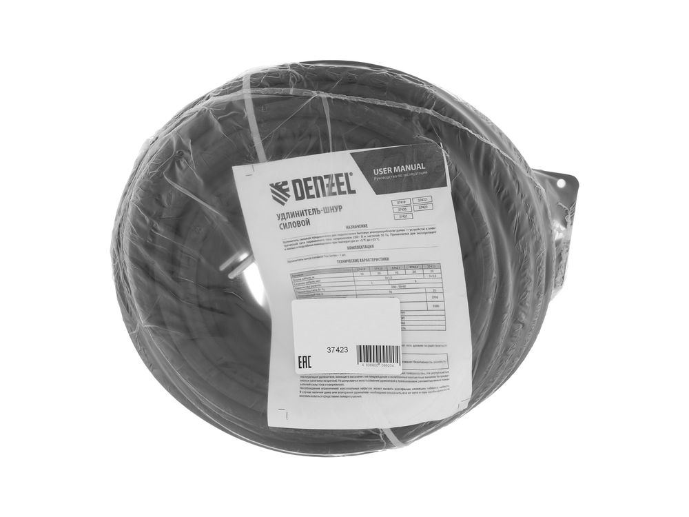 Силовой удлинитель-шнур Denzel Top Series 37423 с 3 розетками, с кабелем КГТТ сечением 3 x 2,5 мм и длиной 20 м, предназначен для подключения электроприборов на удалении от розетки. Суммарная мощность потребителей составляет 5500 Вт для полностью размотанного кабеля и 2750 Вт — для смотанного. Удлинитель подходит для подключения электроинструмента, будет полезен на строительной площадке и в быту.