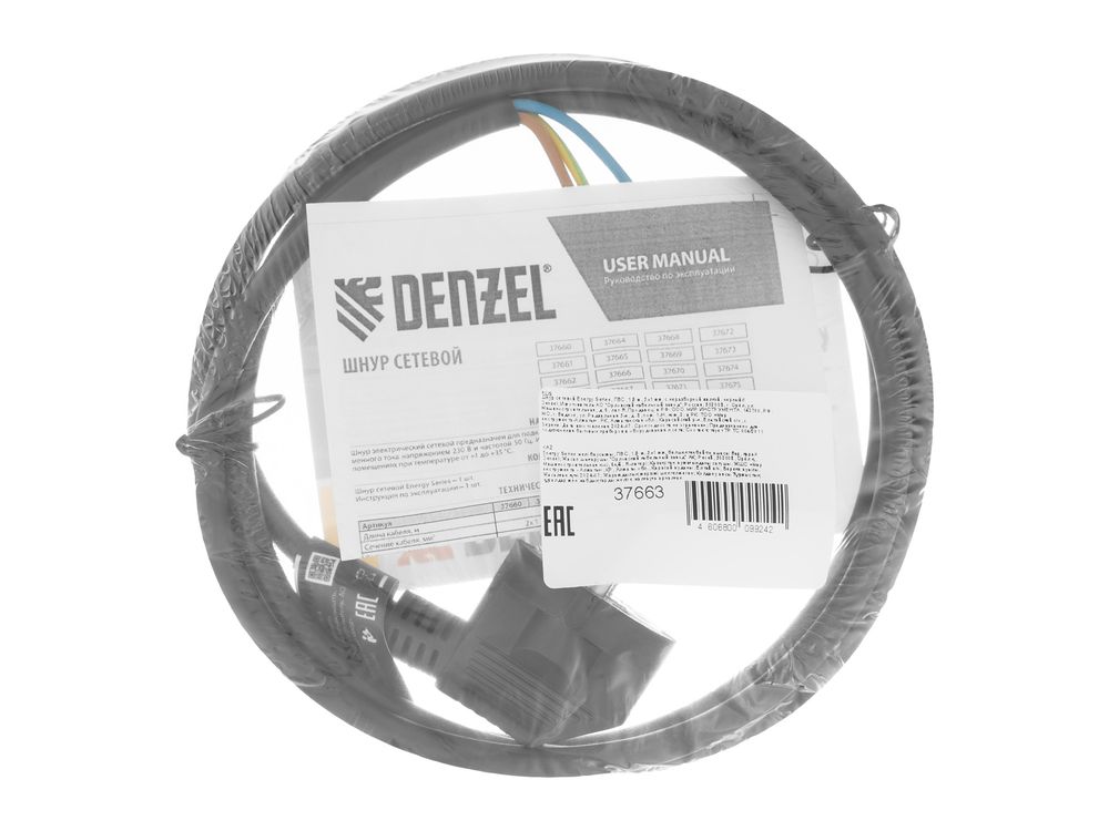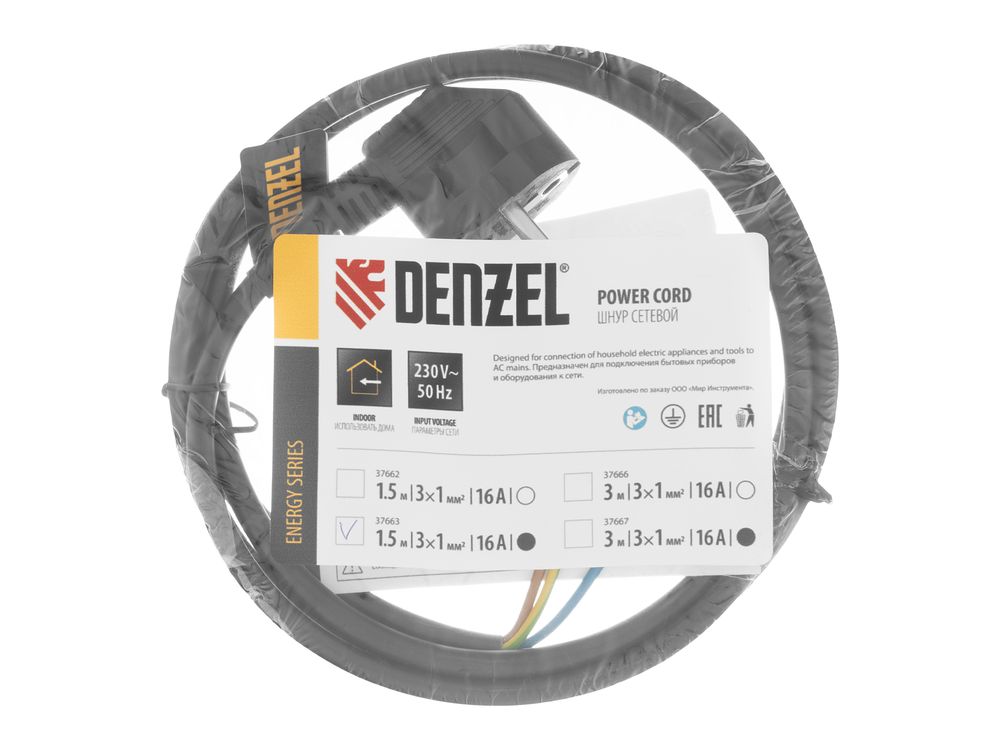 Шнур сетевой Energy Series, ПВС, 1,5 м, 3 x 1 мм, с неразборной вилкой, черный,-684