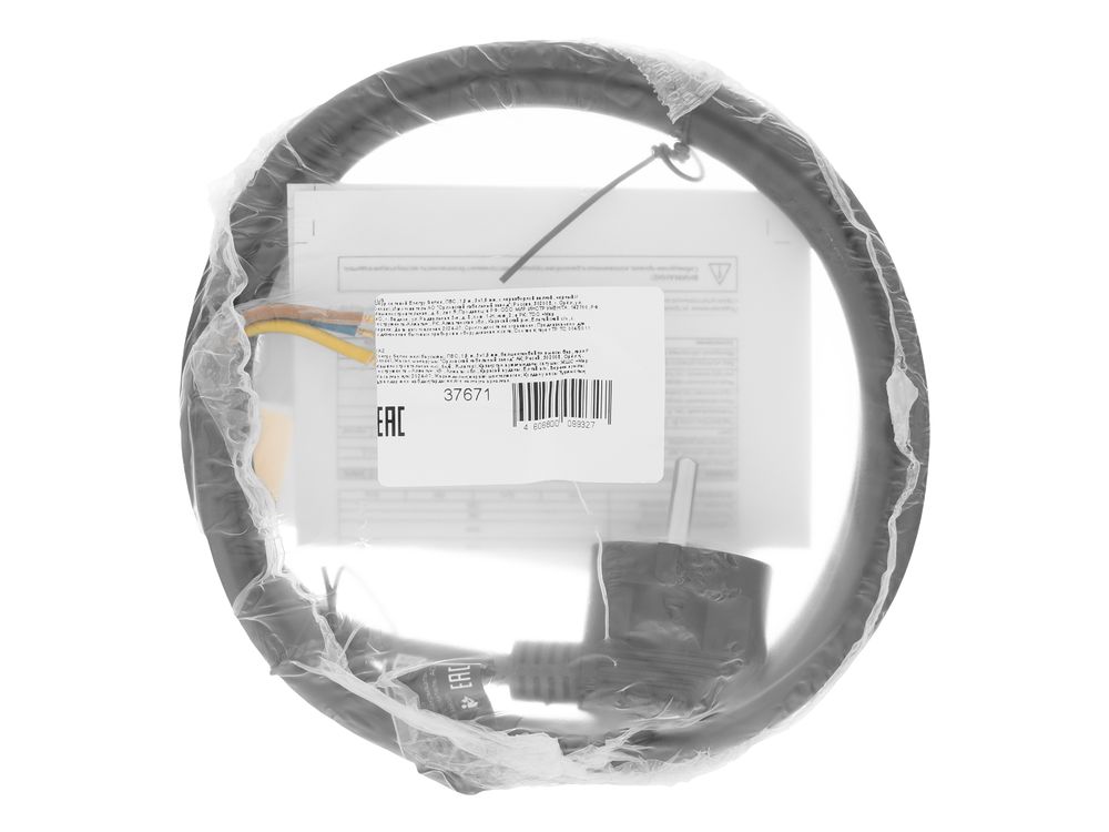 Шнур сетевой Energy Series, ПВС, 1,5 м, 3 x 1,5 мм, с неразборной вилкой, черный,-684