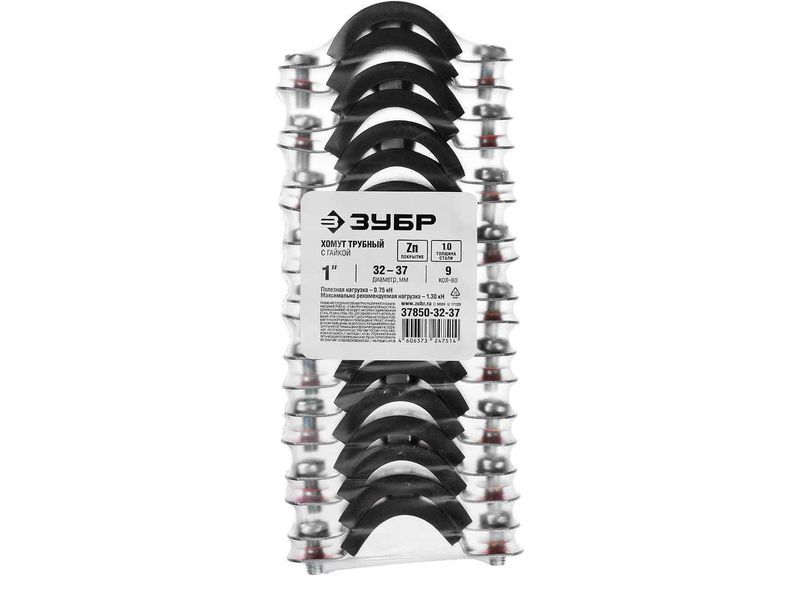 Хомут трубный с гайкой, оцинкованный, 1", 9шт, ЗУБР Мастер 37850-32-37