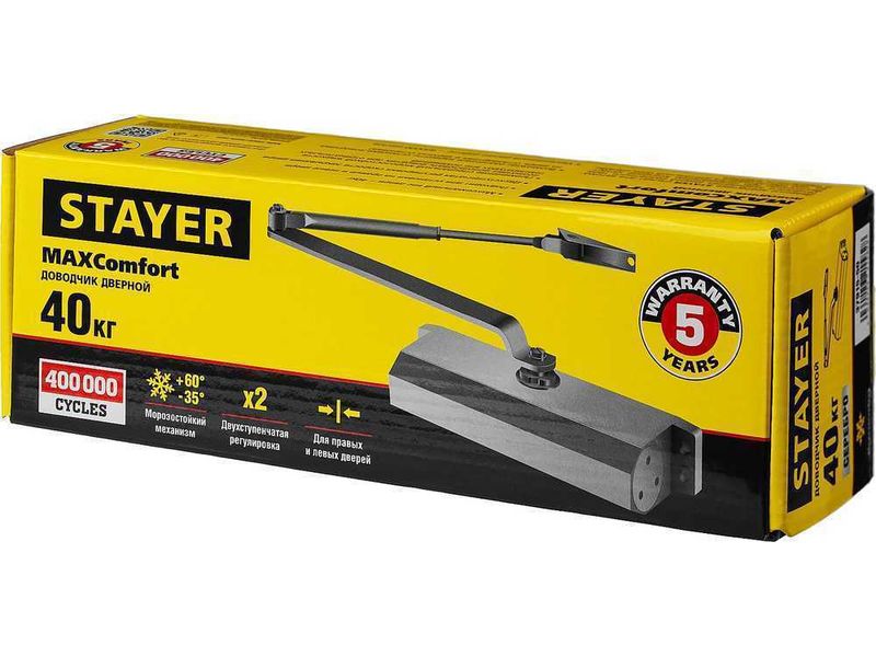 Купить Доводчик дверной STAYER, для дверей массой до 40 кг, цвет серебро