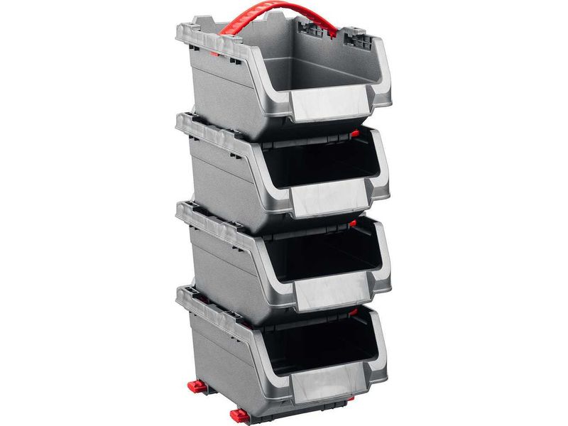 Лоток CLICK BIN LARGE можно использовать как отдельно, так и в виде органайзера соединив несколько таких вместе. Фиксация между собой обеспечивается при помощи специальных пазов и клипс. Наличие рукоятки позволяет легко переносить органайзер. Лоток можно фиксировать на любую удобную для мастера вертикальную поверхность.