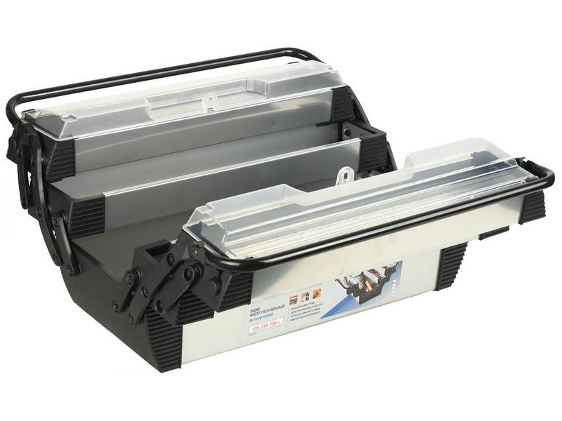 Ящик с раздвижными полками позволяет организовать удобное удобное хранение инструмента и доступ к нему. Широкая ручка помогает сместить центр тяжести ящика, что обеспечивает удобство и комфорт переноски